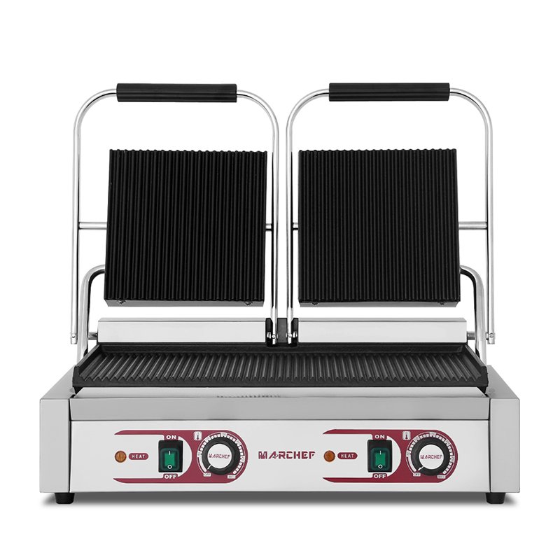 Extra-Wide 500x280mm Grill Surface:Generous full-ribbed plate design accommodates multiple sandwiches or meats simultaneously, maximizing throughput during peak hours.